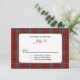 Stylish plaid wedding response card done in the classic red Scottish Clan MacFarlane pattern. A white text area, with graphics of a thin gold frame has custom text ready to personalise for your special day. Matching products are available.