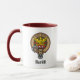 Clan MacGill crest badge surrounded by a strap and buckle over tartan background. Custom text on both sides.