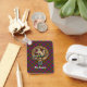Clan MacGowan crest badge surrounded by a strap and buckle over tartan background. Custom text on both sides.