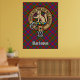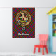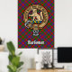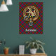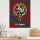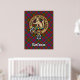 Clan MacGowan crest badge surrounded by a strap and buckle over tartan background. Custom text.
