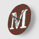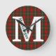 Colourful plaid wall clock done in the red and green clan MacGregor tartan plaid pattern. A large white one letter monogram is ready to personalise along with the green text running down the large letter. Great addition to any room and makes a nice gift idea.