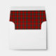 Envelopes with plaid liner feature the MacGregor family clan tartan pattern. Traditional vintage Scottish plaid from 1884 in bright red, forest green, and white. Matching personalised stationery and return address labels available.