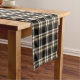 Table runner with the MacGuinness family tartan, a traditional plaid pattern in black, tan, and creamy white. Great for weddings, family reunions and home decor accents. Choose from three sizes.