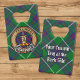 Clan MacIntyre crest badge surrounded by a strap and buckle over tartan background. Custom text on both sides.