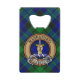 Clan MacKay crest badge surrounded by a strap and buckle over tartan background. Custom text on both sides.