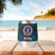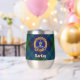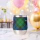 Clan MacKay crest badge surrounded by a strap and buckle over tartan background. Custom text on both sides.
