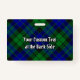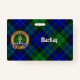 Clan MacKay crest badge surrounded by a strap and buckle over tartan background. Custom text on both sides.