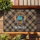 Clan MacKenzie Crest over Brown Hunting Tartan Doormat