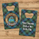 Clan MacKenzie crest badge surrounded by a strap and buckle over tartan background. Custom text on both sides.