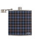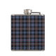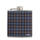 Monogrammed flask with the weathered tartan for Clan Mackenzie and its septs, including MacCharles and Ure. Muted blue and brown reproduction Scottish plaid pattern from 1778, with black and grey accents.