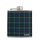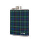 Monogrammed flask with the tartan for Clan Mackenzie and its septs, including Charleson and Iverson. Dark blue and forest green Scottish plaid pattern from 1778, with black, red and white accents.