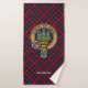 Clan MacLachlan crest badge surrounded by a strap and buckle over tartan background. Custom text on each towel.