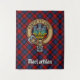 Clan MacLachlan crest badge surrounded by a strap and buckle over tartan background. Custom text.