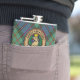 The flask itself is fine. It’s a cheap flask, obviously bought in bulk, however am prepared to overlook that. Given that it is a personalized item, I would have liked to have seen gift boxing instead of the generic packaging. Terrible printing, and/or quality. It’s a cheap, tacky vinyl. It is not cut straight and is also applied in a way that it is overhanging the bottom, causing the glue to catch on items and it will eventually roll and tear, damaging the wrap.