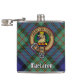 Clan MacLaren crest badge surrounded by a strap and buckle over tartan background. Custom text.