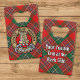 Clan MacLean crest badge surrounded by a strap and buckle over tartan background. Custom text on both sides.