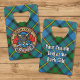 Clan MacLeod crest badge surrounded by a strap and buckle over hunting tartan background. Custom text on both sides.