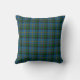 Monogrammed throw pillow done in a traditional and colourful Scottish clan MacLeod tartan plaid pattern. A blue circle, on the front of the pillow, has a monogram and family name. Personalise the monogram and name to suit your needs.