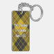 Clan MacLeod of Lewis crest badge surrounded by a strap and buckle over tartan background. Custom text on both sides.