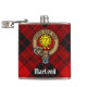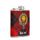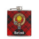 Clan MacLeod of Raasay crest badge surrounded by a strap and buckle over tartan background. Custom text on both sides.