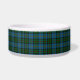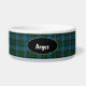 Stylish dog food dish with the colourful clan MacLeod tartan plaid pattern, around the dish, and an oval black text area, in the middle, for your pet's name. White text allows you to customise with your pet's name, for a personalised bowl your canine friend can be proud of.