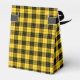 Traditional Scottish plaid pattern in bright yellow and black with red highlights.