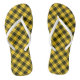 Flip flops with the Clan MacLeod tartan, a classic Scottish plaid pattern in bright yellow and black with red accents.