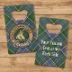 Clan MacMillan crest badge surrounded by a strap and buckle over hunting tartan background. Custom text on both sides.