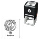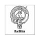 Clan MacMillan crest badge surrounded by a strap and buckle. Custom text.