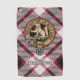 Clan MacPherson crest badge surrounded by a strap and buckle over hunting tartan background. Custom text.