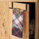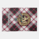 Clan MacPherson crest badge surrounded by a strap and buckle over hunting tartan background. Custom text.