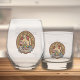 Clan MacPherson crest badge surrounded by a strap and buckle over red dress tartan background. Custom text on both sides.
