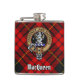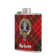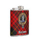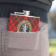 Clan MacQueen crest badge surrounded by a strap and buckle over tartan. Custom text.