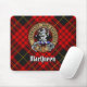 Clan MacQueen crest badge surrounded by a strap and buckle over tartan background. Custom text.