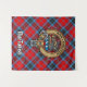 Clan MacTavish, Thomson or Thompson crest badge surrounded by a strap and buckle over tartan background. Custom text.