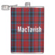 Stylish hip flask featuring Scottish Clan MacTavish tartan plaid pattern and customisable text