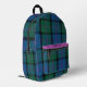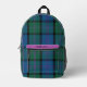Stylish blue, green, black and mauve tartan plaid pattern backpack done in the clan MacThomas pattern. Personalise the custom text, on the mauve accent stripe, to suit your needs. Great gift idea for her.