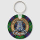Clan Malcolm or MacCallum crest badge surrounded by a strap and buckle over tartan background. Custom text on both sides.