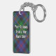 Clan Malcolm or MacCallum crest badge surrounded by a strap and buckle over tartan background. Custom text on both sides.