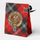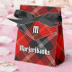 Clan Marjoribanks crest badge surrounded by a strap and buckle over tartan. Custom monogram. Custom text.