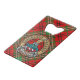 Clan Morrison crest badge surrounded by a strap and buckle over red tartan background. Custom text on both sides.