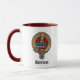 Clan Morrison crest badge surrounded by a strap and buckle over red tartan background. Custom text on both sides.