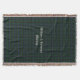 Colourful custom fringe end throw blanket made with graphics of the green, blue, black traditional Scottish clan Murray tartan plaid pattern. Khaki tan old world style text can be personalised to read what you want. Lovely gift idea for anyone.