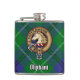 Clan Oliphant crest badge surrounded by a strap and buckle over tartan. Custom text.