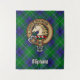 Clan Oliphant crest badge surrounded by a strap and buckle over tartan background. Custom text.