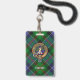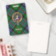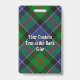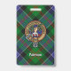 Clan Paterson crest badge surrounded by a strap and buckle over tartan background. Custom text.