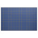 Fabric in the family tartan for Clan Pearson, a traditional Scottish plaid pattern from 1951 in royal blue and gold with brown and grey accents. Pattern repeats every 4". Special order smaller or larger scale via https://plaidwerx.com/contact.htm