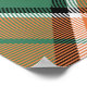 Clan Pollock crest badge surrounded by a strap and buckle over tartan background. Custom text.