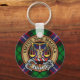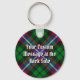 Clan Russell crest badge surrounded by a strap and buckle over tartan background. Custom text on both sides.