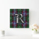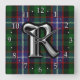 Clan Russell Letter R Monogram Tartan Square Wall Clock
